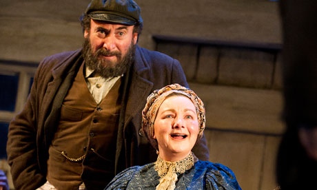 Master Director Nicholas Hytner corrals the large ensemble effectively but allows the central love story to fall completely flat. Some blame must also go to Hytner for Anthony Sher’s unwatchable, over the top caricature of local businessman Jacob Bindel (think Tevye, if he actually was a rich man. And insufferable).