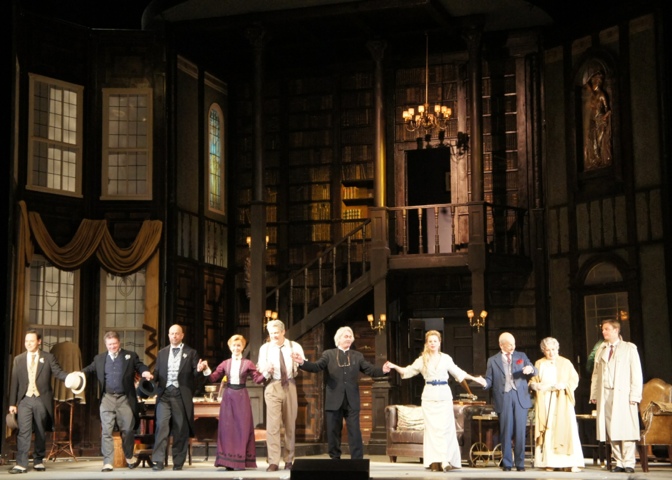 Despite some not insignificant cuts,the show still somehow ran for a whopping three hours and ten minutes, mostly related to changing over the large scale sets. An odd omission was the front-of-curtain scene before Ascot between Mrs Higgins and Pickering. Coming 75 minutes into the performance, the pause was understandably interpreted as interval and ushers had to dash about telling audience members to say in their seats. More annoying, except that it kept act one down to one hour and forty minutes, was the excision of the entire Embassy Ball scene. In act two, Eliza’s return to the flower market with the “Wouldn’t it be Loverley” reprise was cut as well.