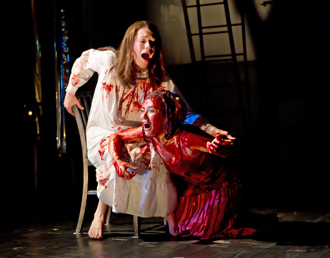 A four-week out-of-town try-out in Stratford-upon-Avon, England saw Broadway legend Barbara Cook, playing Carrie’s mother, nearly decapitated by the set on opening night. She promptly quit, but stayed for the remainder of the England dates. Those who have seen the 1976 movie, the first of many to be based on a Steven King novel, will no doubt remember the bucket of blood tipped on poor Carrie’s head at prom. Thick sticky liquid and head mikes don’t mix, so the action had to change to blood being thrown at Carrie.