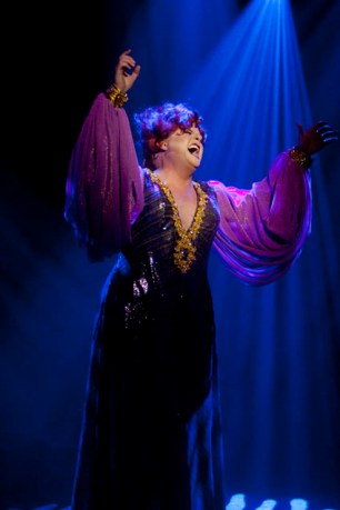 To take nothing away from the rest of the creative team, the highlight is most assuredly the eye-popping costumes, designed by Isaac Lummis. The sheer number of them is incredible, each designed brilliantly and made from the most shimmering, spectacular fabrics and trimmings imaginable. This is an immense achievement and huge congratulations go to all involved in creation of these costumes. Setting off these stunning frocks is the delicious make up and wig styling of the inimitable David Wisken.