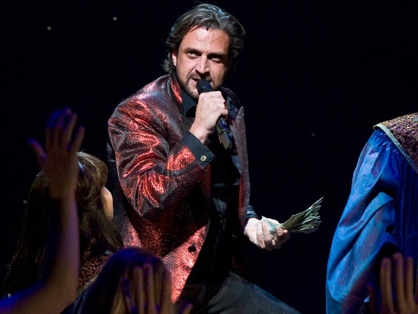 Magnetic actor Raul Esparza will no doubt walk away from the project unscathed. His singing and energy are strong, although he is difficult to understand when speaking in the hand held mike. The role of conman/preacher Jonas Nightingale is, unfortunately, watered down to basically a charming guy who has a shady background we only hear about, robbing top actor Esparza of a meatier role. The only conflict for the audience is how a seemingly nice guy did some of the things he is meant to have done.