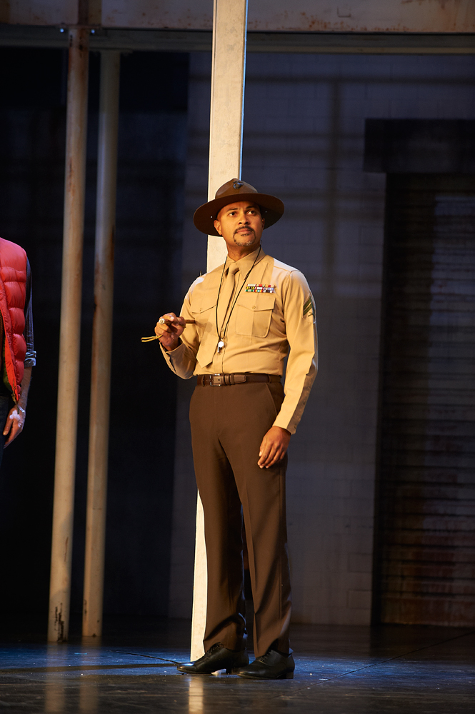 The musical moves on to the training camp where we meet the notorious Sergeant Foley as he inducts the latest batch of flabby, longhaired candidates sent to try his patience. Foley’s derisive nicknames follow the characters through the story, aiding the audience’s identification of and attachment to the recruits.