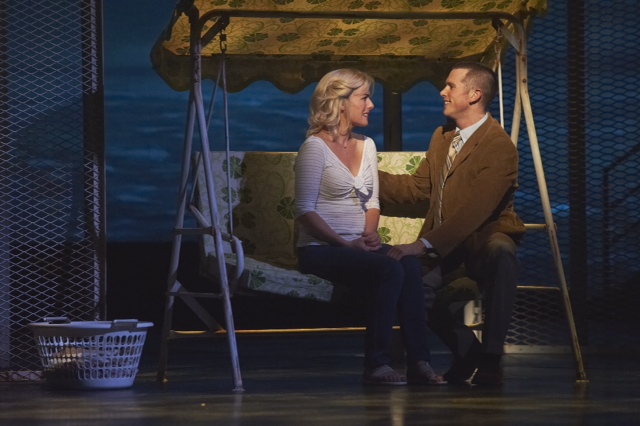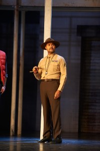 Alex Rathgeber casts aside his lightweight tenor lead image with his pared back, sensitive portrayal of star recruit Sid Worley. By presenting a character who is not comfortable in his own skin, Rathgeber captures the unease bubbling beneath the surface of a young man who ostensibly has everything going for him. And it is well worth the wait to hear Rathgeber sing in act two’s “Be My Wife.”