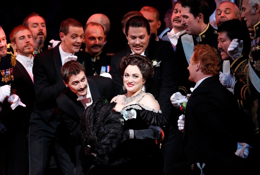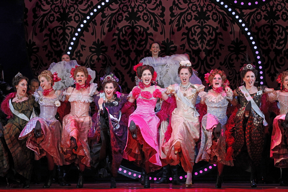 The gorgeous costumes are a sparkling delight, with the men’s military formal wear looking particularly impressive. The same cannot be said for the uninspired sets, which also suffer the indignity of being too small for the State Theatre stage, creating sightline problems during ensemble scenes.