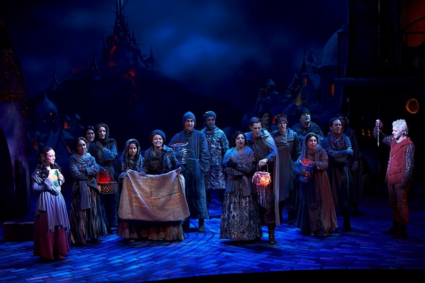 The magical world of Alaylia is created quite effectively in a seamless blend of constructed sets and projections. Doğan Ür’s illustrations have been incorporated into Adam Gardnir’s set designs and Nimrod Weiss’ projections. Panels above and on each side of the stage create a large canvas for the projections, which, along with Trudy Dalgleish’s fabulous lighting design, serve to create quite an immersive experience for the audience.