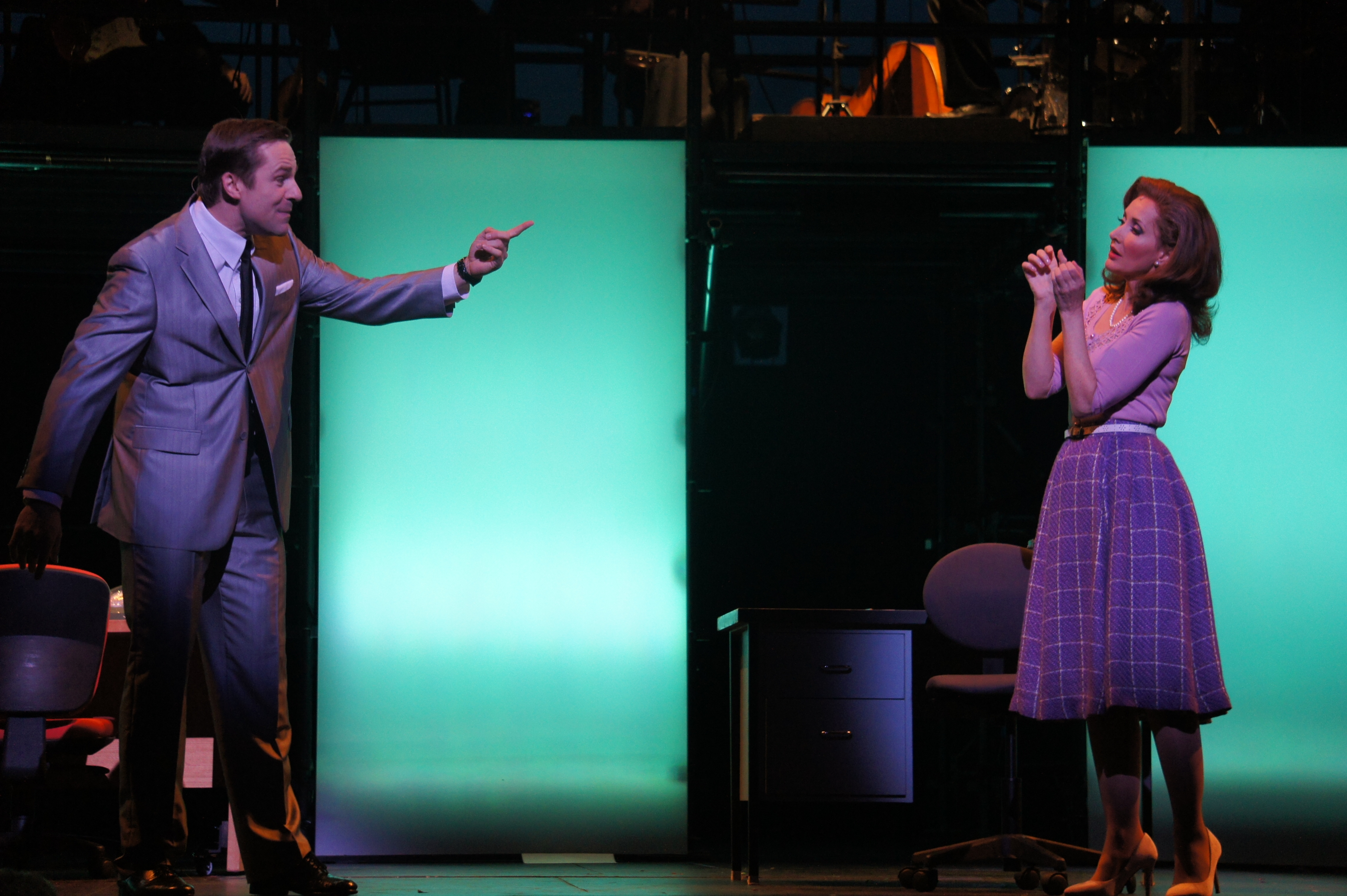 Chief achievement in Hetherington’s star turn as Chuck Baxter is his ability to play a meek, unnoticeable guy when he is, in fact, tall and handsome. On stage for almost the entire show, Hetherington is completely endearing, excelling at physical and verbal comedy, and singing the score with consummate ease.