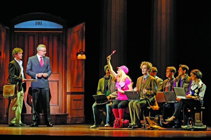 Faithfully adapted by Heather Hach from the hit 2001 Reese Witherspoon movie, the musical both honors and enhances its source, taking us from the sunny dorms of UCLA to the hallowed halls of Harvard. The stroke of genius at the heart of the story is the explicit inclusion of the study and sacrifice Elle goes through to achieve her goals. Her ingenuity, integrity and passion for the law develop before our eyes, making her ultimate success all the more believable. The final feature that really rounds Elle off as a perfect role model is her realization that love is not just about the superficiality of looks and popularity. It is the rare music theatre heroine whose journey is concluded satisfactorily by realizing she actually does not want the focus of her opening ‘I wish’ song.