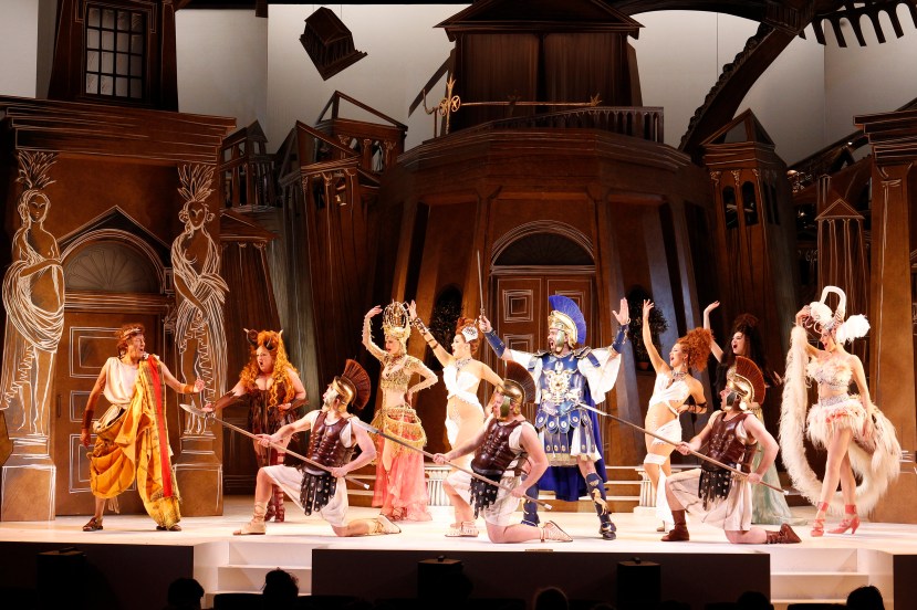A year or so out from Melbourne Theatre Company, Director Simon Phillips basically heads his own personal troupe of theatrical collaborators and performers. And what a team they are. The top-notch creatives of Forum have worked together on MTC hits such as Urinetown, The 25th Annual Putnam County Spelling Bee and The Drowsy Chaperone as well as commercial musicals such as Priscilla and Love Never Dies. The assembled actors, save for one new face, have all appeared in these hits as well. Clearly, the pre-established familiarity and trust have facilitated the creation of this latest sidesplitting delight.