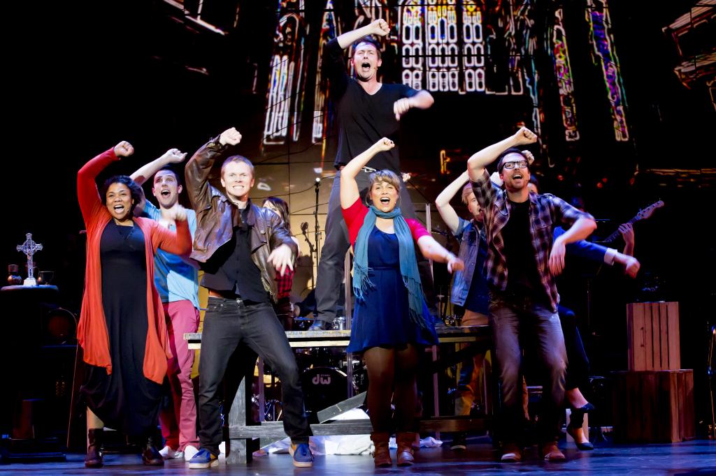 Set in the near future, the concept of director Aaron Joyner was of disillusioned people seeking solace, refuge and togetherness in an abandoned church. Wonderful though the songs are, the book of Godspell can tend to drag, especially to those raised on the endless New Testament stories told throughout the show. Having the bible and its stories already established in this modern setting means that the ensemble can all join in with presenting the stories in rapid succession. Taking a cue from the revival, a wide array of presentations were used to vary the stories. Devices such as tabloid tv, rap, charades, mime and narration created a fun Theatre Sports-like atmosphere, which meant the parables seemed to flow organically from the characters.