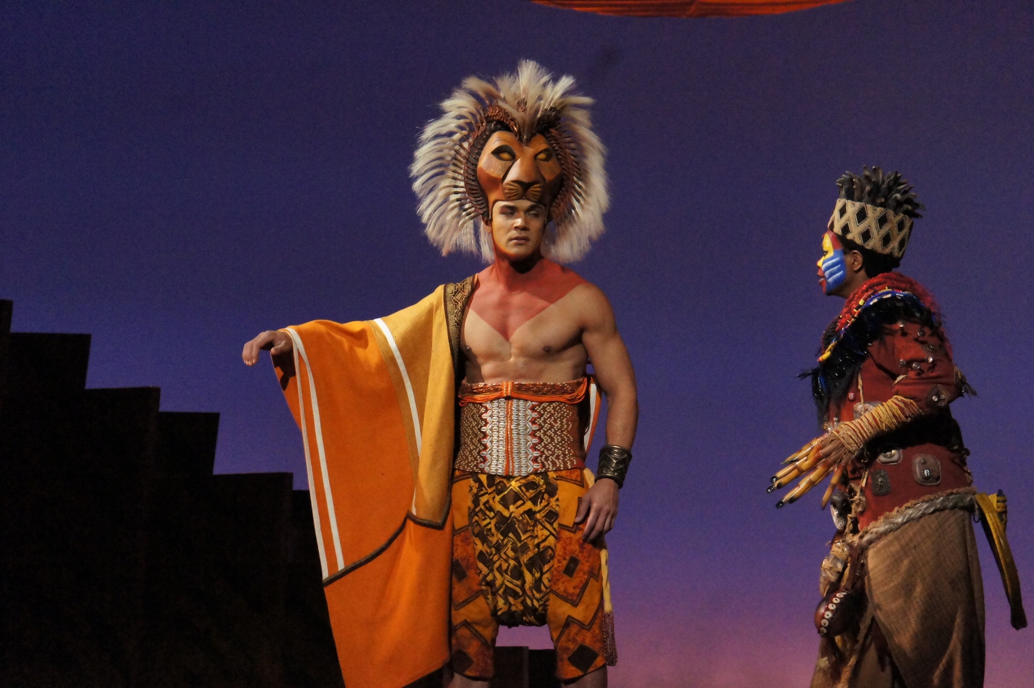 In “He Lives in You,” Rafiki (Buyi Zama) helps grown Simba (Nick Afoa) to remember his Father and to see his place in the kingdom.