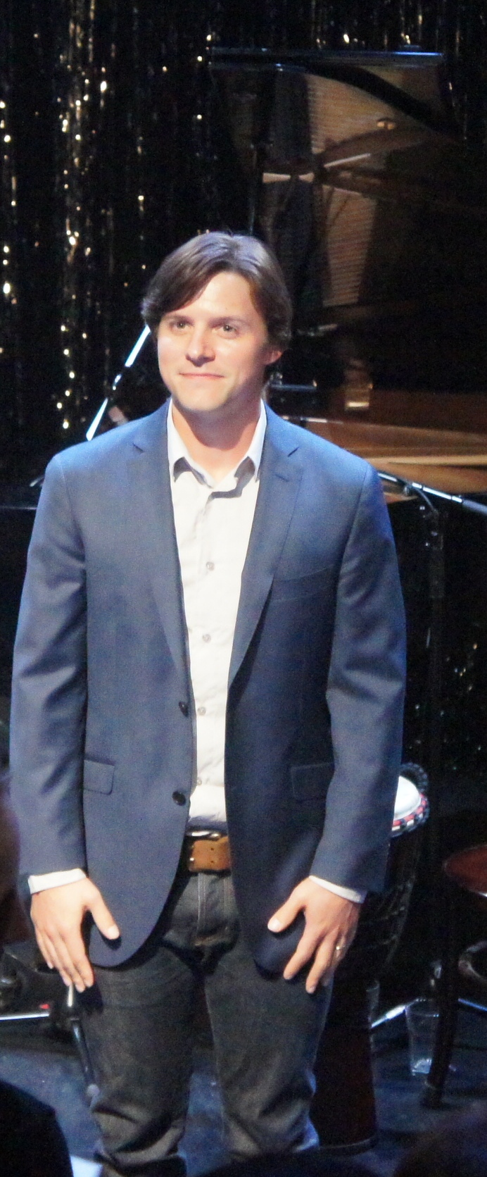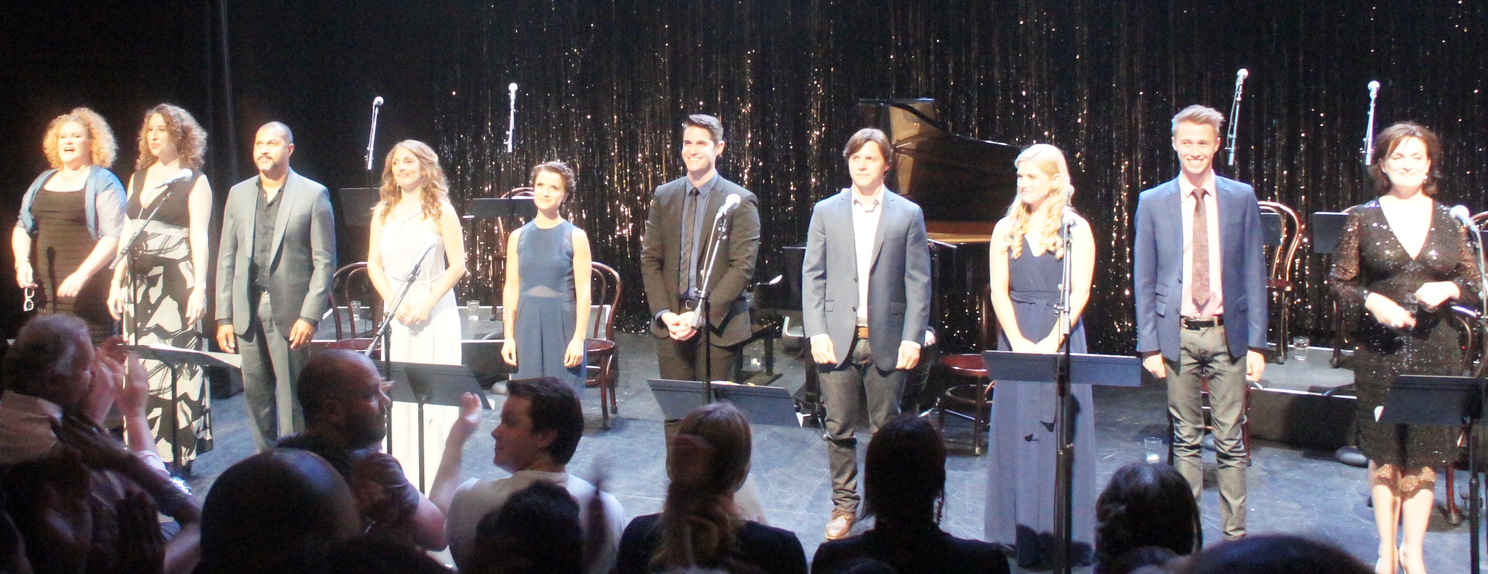 The look of the concert staging was slick, with well-chosen hues of watery blue on the cast, and an attractive layout of platforms, tinsel curtain and glossy bentwood chairs on the stage.
