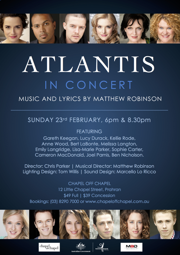 Atlantis in Concert was staged as a reading at 6pm and 8.30pm on Sunday 23 February 2014.