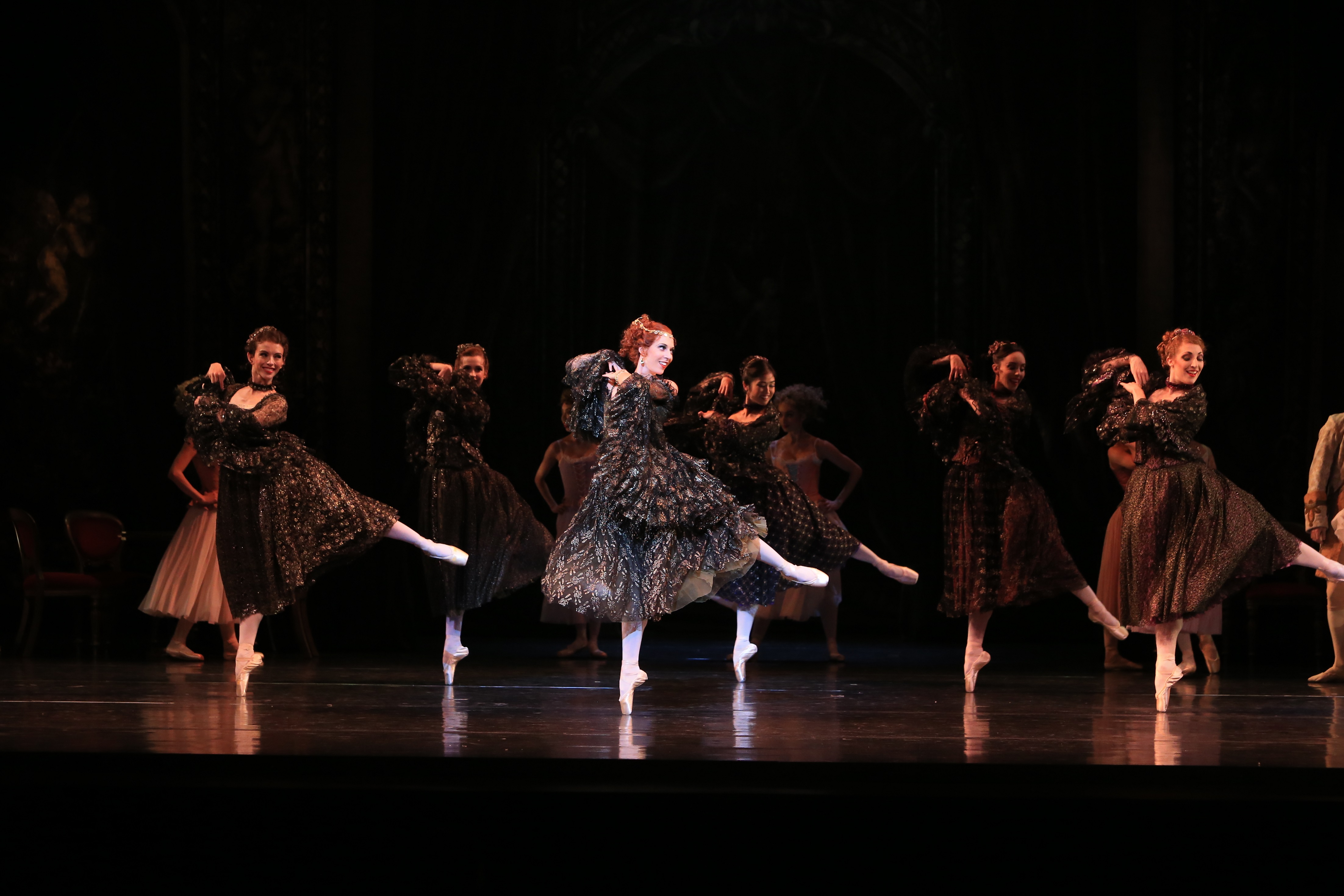 With each year, stellar Principal Artist Adam Bull enhances his superb technique and physical beauty with layers of emotional complexity in his acting. His long elegant limbs are used to superb effect as the impetuous young des Grieux, and Bull develops a soulful, compassionate performance that adds significantly to the pathos of the story. An example of Bull’s strong stage presence comes in act two as des Grieux seethes with anger and jealousy at the sight of his beloved Manon on the arm of wealth Monsieur GM. While des Grieux has little or no dancing in this scene, Bull achieves the full range of emotion with his acting skills and physical presence. Beginning with an energetic early solo that conveys des Grieux’s instant love for Manon, Bull continues through the ballet in excellent form, achieving a touching chemistry with Dunn. The death scene pas de deux from the pair is extraordinary in its level of physicality and trust and in its dramatic effect.