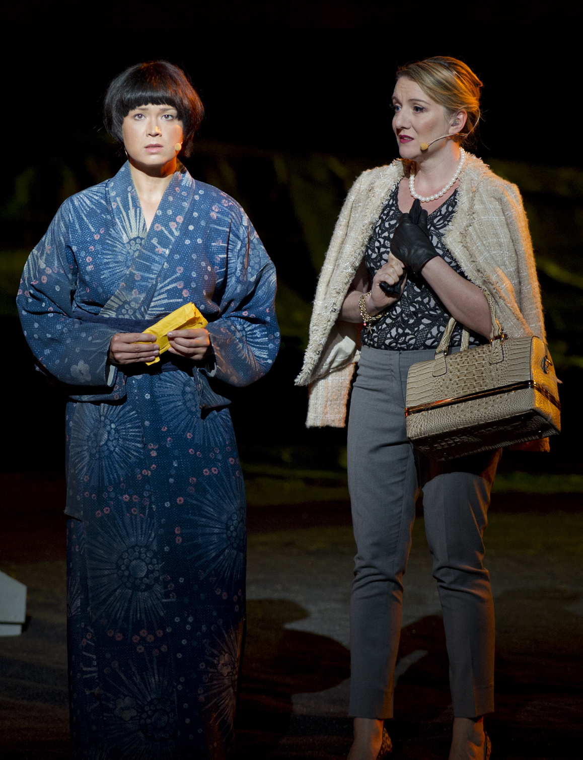 Anna Yun is a sympathetic and noble Suzuki, whose subservient role is shown in her square haircut and unadorned clothing. Yun’s mezzo-soprano is clear and lyrical, and her sensitive portrayal clearly shows Suzuki’s devotion to, and increasing concern for, Butterfly.