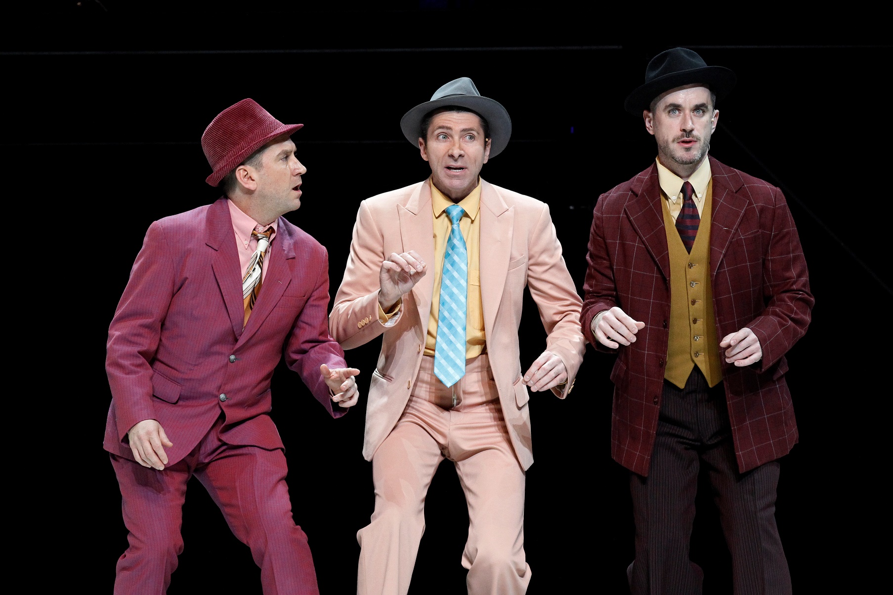 Musical Director Guy Simpson presides over Orchestra Victoria’s impeccable performance of Frank Loesser’s immortal score. System Sound have excelled themselves in allowing individual orchestral parts to be heard so clearly and distinctly. Nathan M. Wright’s snappy choreography is brisk, tight and energetic, and is a joy to watch. Although Wright’s work suffers somewhat from the lack of context of any of the action, he manages to achieve some neat moments of storytelling in amongst the flashy steps he has created.
