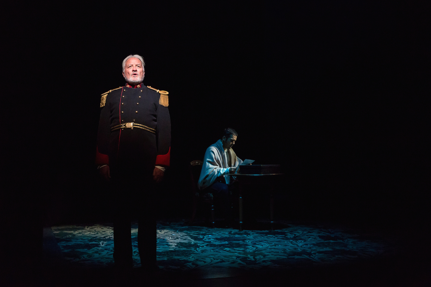 A challenge in presenting Passion, as with many musicals based on films, is the preponderance of scenes. Benjamin Osborne’s choreography sees the Officers set and strike furniture with regimental precision. Although this undertaking becomes a little tedious, the use of glossy period furniture certainly creates a lush look that was absent in the 2013 New York staging, which did away with props to the point that Giorgio and Clara sat on the ground for their bed scenes.