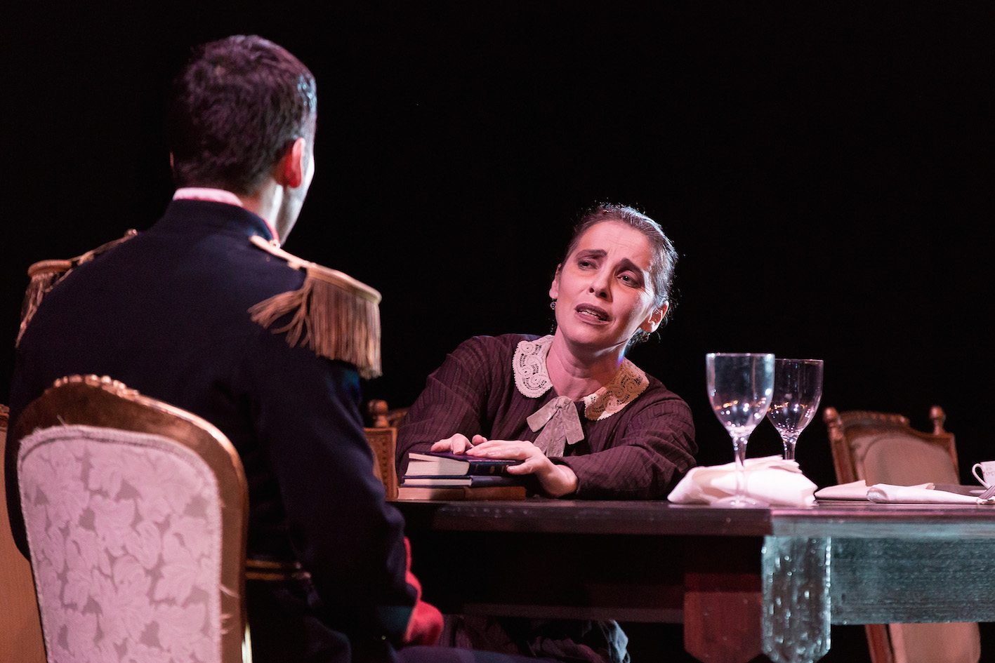 Costumes are similarly lustrous, achieving a strong visual appeal and a solid level of period detail. Curiously, no costume designer is listed, although assistant stage manager Wendy Findlater is credited for “wardrobe.” The officers’ hair may not meet true military standards, but Clara’s wig may be the most beautifully styled hairpiece to be seen on the Melbourne stage this year.