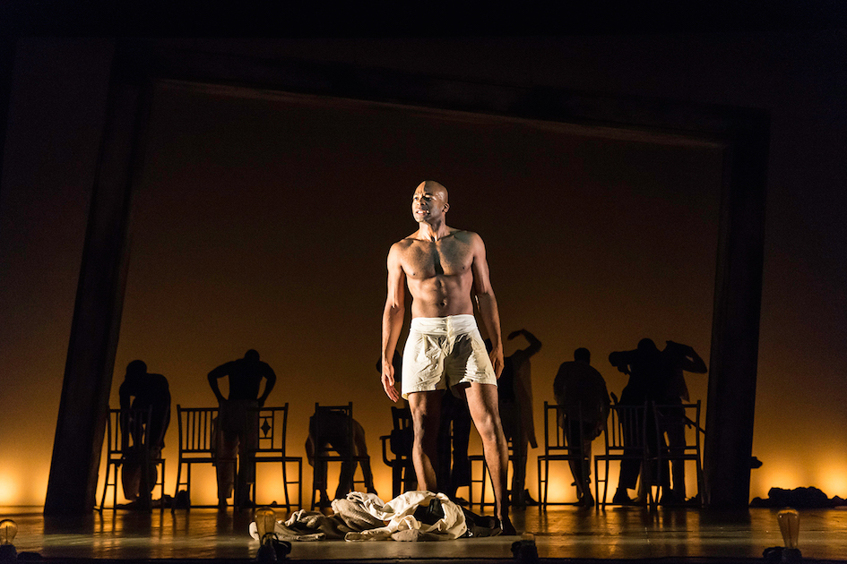 Displaying her expertise with props, Stroman tells the entire story with just a set of chairs. This exposes the content and the cast, which are both more than up to the scrutiny. Crisp comical shadow puppetry illustrates Haywood’s courtroom ditty “Make Friends With The Truth.” A whiz with tap, Stroman stages a terrific tap trio in “Electric Chair,” in which youngest cast member Keenan Munn-Francis is particularly impressive.
