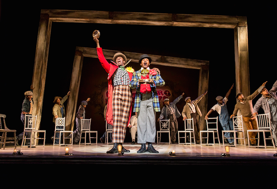 John Kander and Fred Ebb’s music and lyrics are a marvelous pastiche of soaring gospel and temperate spiritual music, seasoned with the tambourines and tap shoes of minstrels. The result is a score as instantly accessible as an audience could ever be grateful to hear. The songs rank with the best in the Kander and Ebb canon, and have the added bite of the social commentary that elevated numbers such as “If You Could See Her” from Cabaret. One of the best here is “Southern Days,” which begins as an exquisite Negro spiritual, then segues into darker lyric variations.