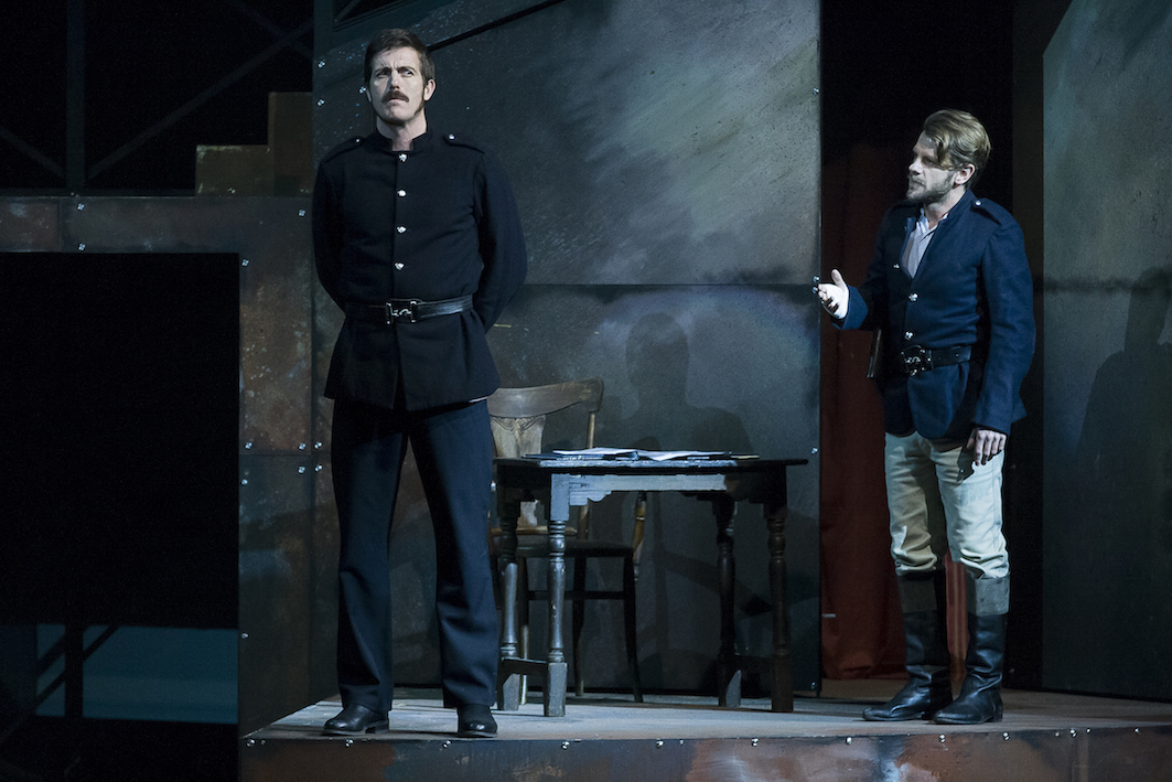 Nick Simpson-Deeks successfully brings out the full spectrum of Fitzpatrick, linking the character’s low self-esteem and cowardly dishonesty to his small stature and his frustrating speech impediment. Fitzpatrick’s nuanced performance is a significant part of the effectiveness of the central dramatic relationship between Ned and Fitzpatrick. Andrew Broadbent brings quiet dignity to Fitzpatrick’s conflicted senior officer, Hare.