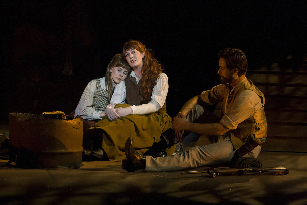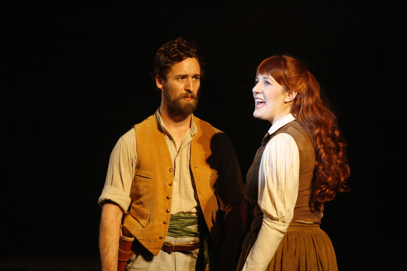 Alana Tranter and Hannah Fredericksen hide their blonde locks under thick red manes as feisty sisters Maggie and Kate Kelly. Lovely singers both, Tranter carries a great deal of the heart of the story in act two as Maggie pines for the men in the run, and Fredericksen energetically captures the frisky naiveté of youngest sibling Kate.