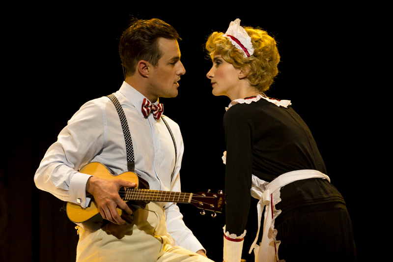 Christie Whelan Browne is an utter delight as daffy Eileen Evergreen, a woman so vain it barely even registers with her that she is part of a love triangle. Whelan Browne scores many a wicked laugh portraying Eileen’s “talent” as the world’s finest interpreter of modern dance. The role also gives Whelan Browne the chance to display a sparkling soprano. Joined by a bevy of bathing beauties, act one’s “Delishious” is a true standout.
