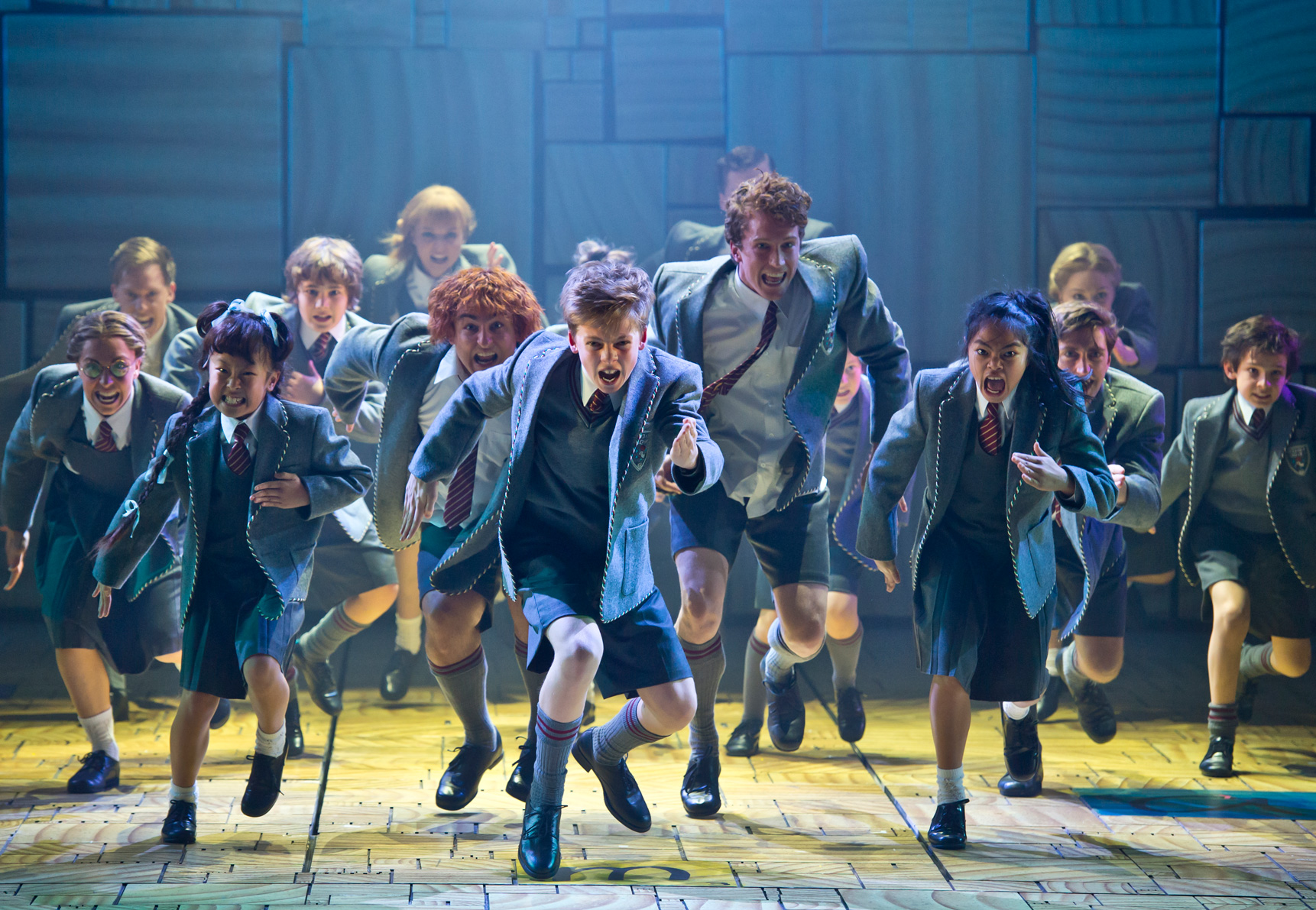 Rob Howell’s ingenious abstract design houses specific scenes with a minimum of props against towering walls of scattered play tiles. If your gaze wanders for a moment, there are all sorts of words and symbols to find spelled out in the seemingly chaotic design. With a scope that fits the mighty Sydney Lyric space perfectly, the scale of production is grander here than in London’s Cambridge Theatre or Broadway’s Shubert Theatre.