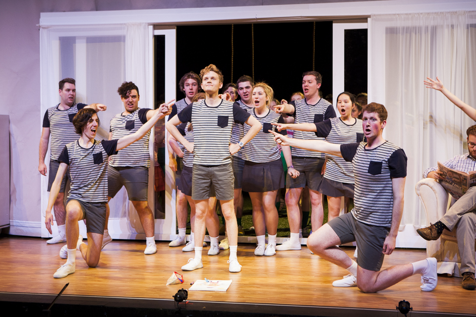The large (30+) chorus is extremely well prepared, singing with uniform sweetness of tone and clarity of diction. Their energy and focus are likewise evenly matched, and the multitude of scene changes completed by the cast run like clockwork.