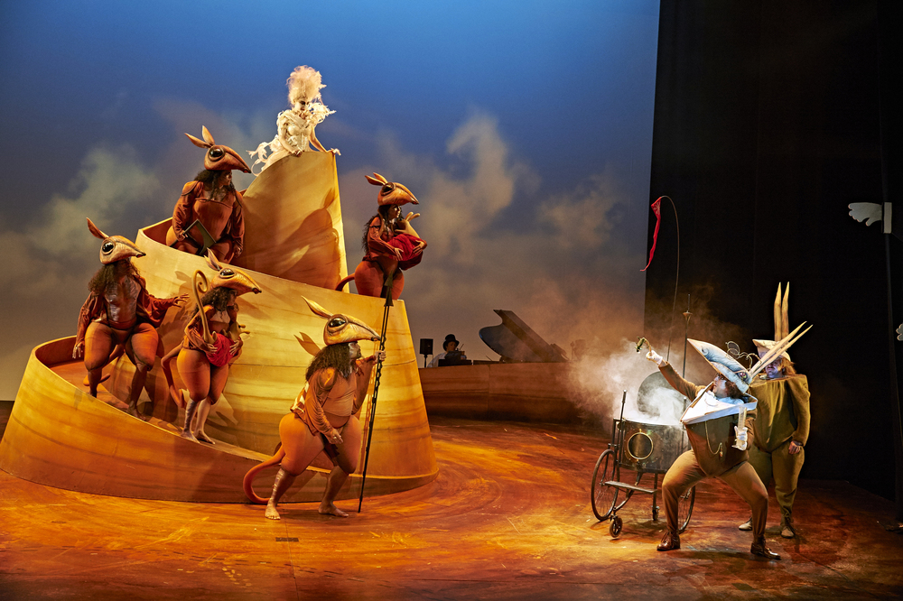 The scenario unfolds gradually on stage, like turning the pages of a children’s book (the second new opera like this in a week). In an allegory for the colonialisation of Australia, the idyllic existence of the indigenous “marsupials” is exponentially disrupted by the invading “rabbits.”