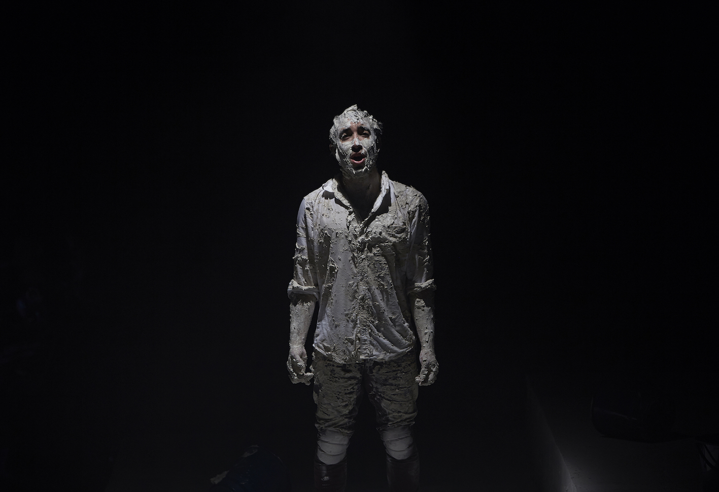 Director Imara Savage imbues her young cast with a strong sense character, providing clarity and gravitas to the scenario even when expositional narrative is sparse. For those unfamiliar with the text, a quick read of the précis of the eight scenes in the complimentary program is all that is needed to appreciate the setting. As we hear of the deaths of each of Jim’s comrades, Savage mostly implies the violence of war, using just a single device to convey the unshakeable impact of witnessing such horror. The actors coat themselves in sticky clay-like mud, a visceral, outward sign of the memories that cannot be washed away.