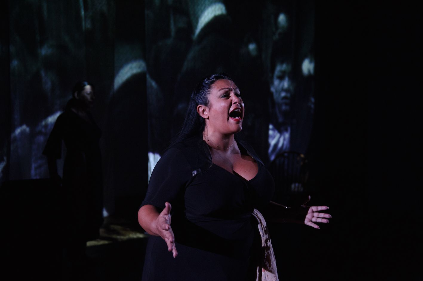 Presented as an entertaining hybrid of interwoven story and song, the staging is enhanced with projected images related to the women, husbands and children whose tales are shared. Patterson is joined by fellow talented performers Maria Mercedes and Artemis Ioannides as three “Fates” who channel the voices of the past to inform the present.
