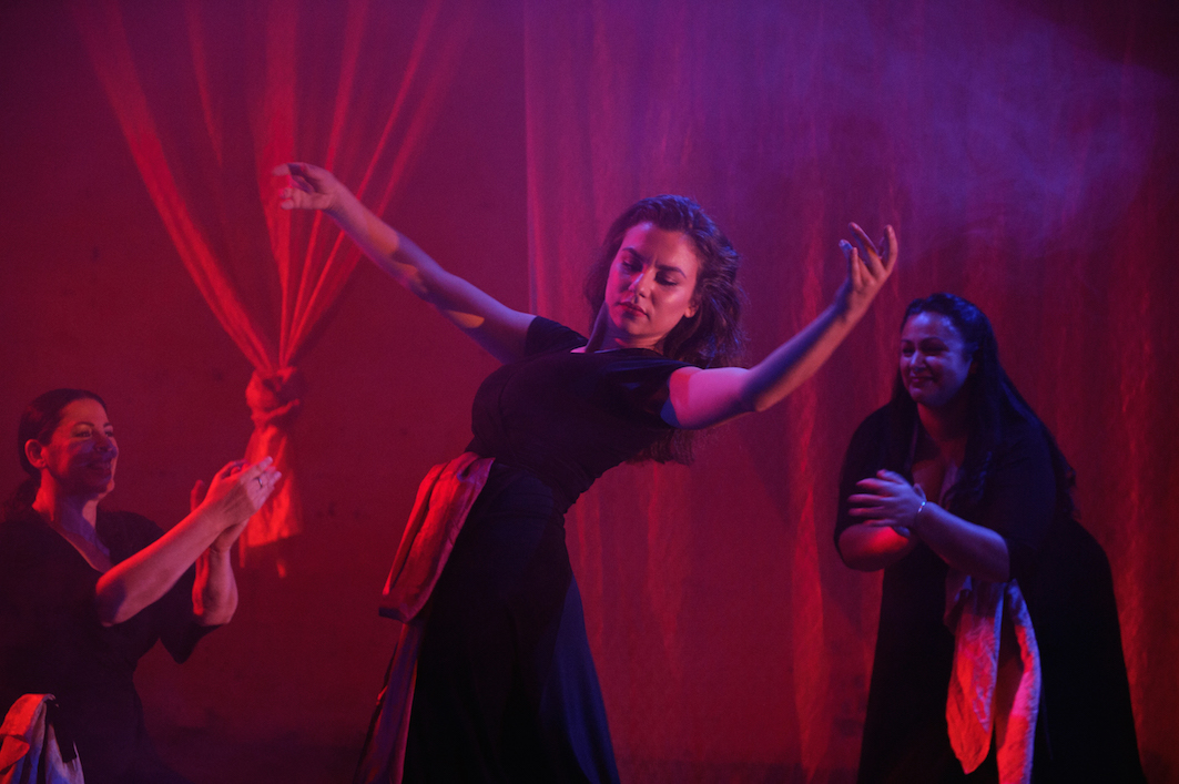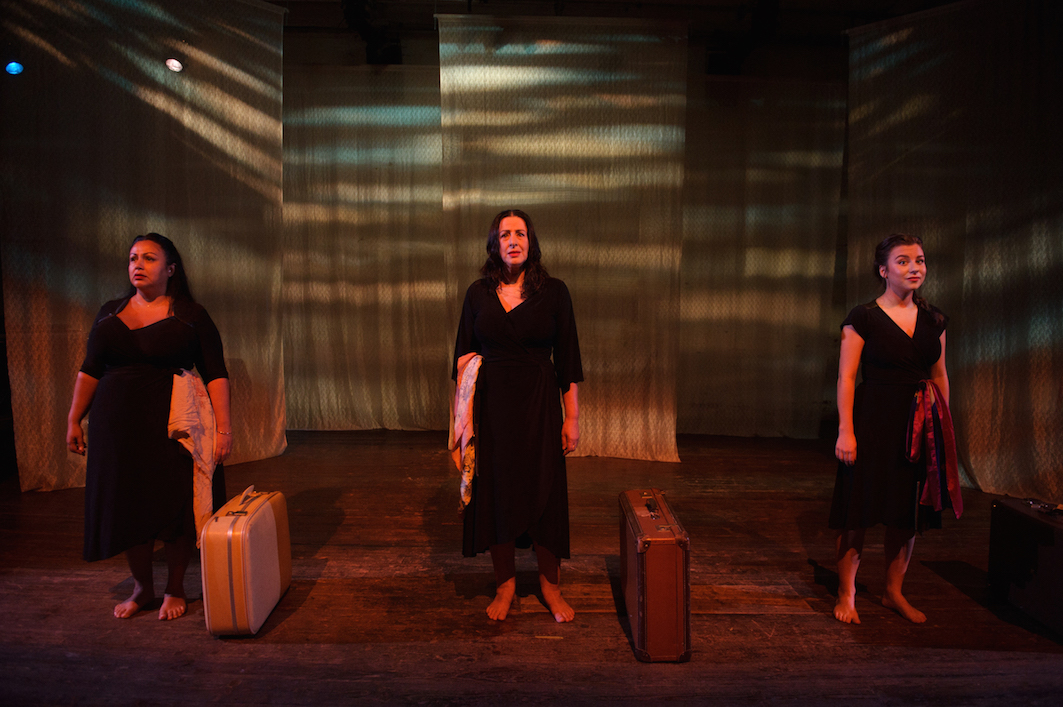 Director Petra Kalive has brought out a range of styles in the three performers, and uses just a couple of props to create variety and levels in the scenes. Kalive gives the show a natural feeling of flow, with stories just beginning and ending organically as if the descendants are really speaking spontaneously through the muses. In a wise move, the performers do not portray the tellers of the stories in their old age, but rather their young and vital selves.