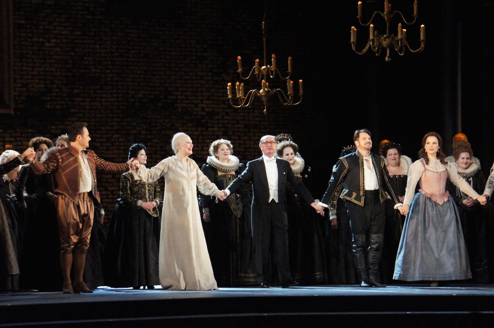 The spotlight returns to Radvanovsky for the final scene. In her madness, the Queen removes her robe and wig, looking like a ghastly shadow of her former glory. Radvanovsky’s commitment remains strongly focused until the last, the Queen’s delirium providing a final showcase for the untiring suppleness of her voice.