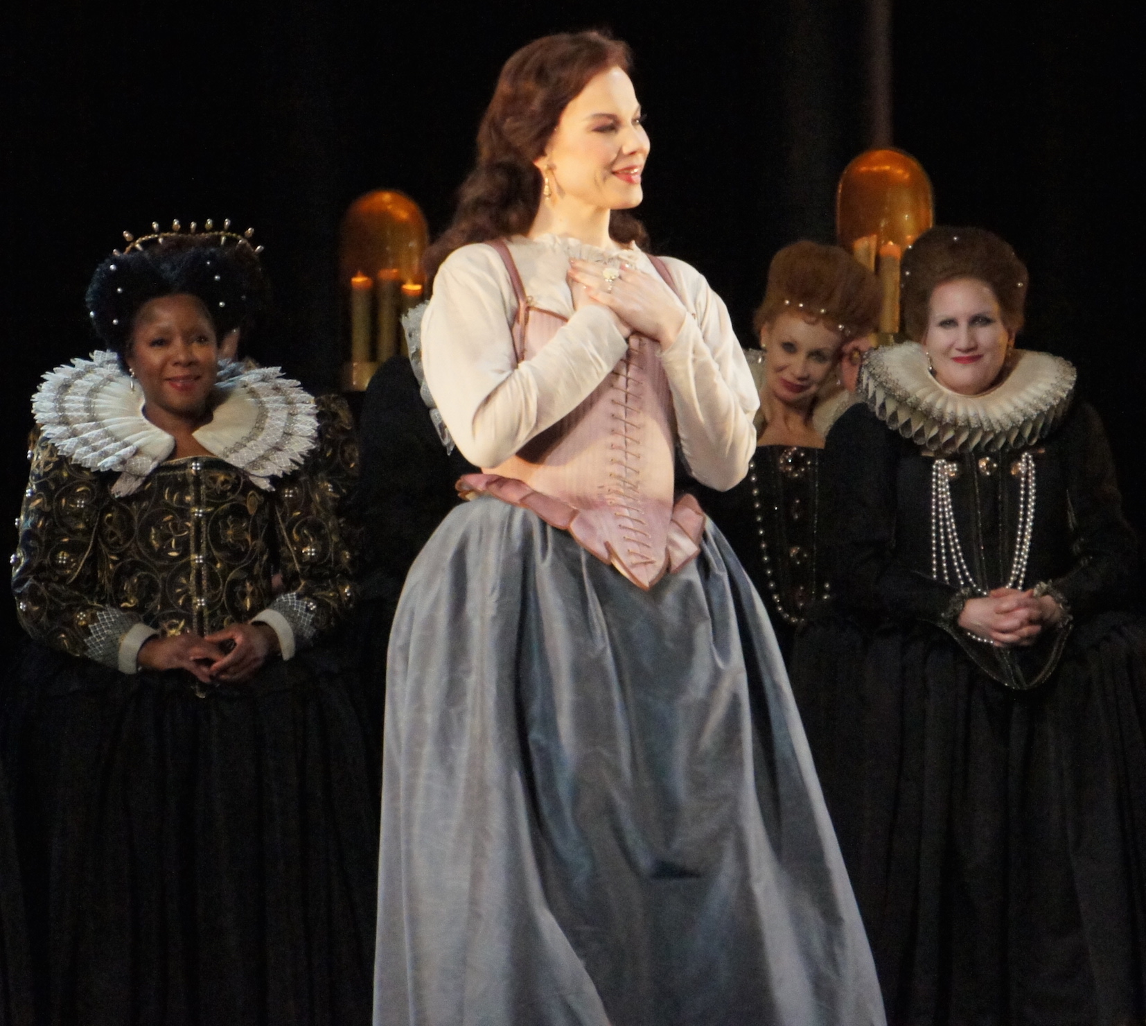 As Duke of Nottingham, baritone Marius Kwiecien completes the quartet of stellar lead singers. Following the arc of the wronged husband, Kwiecien demonstrates his strength and flexibility as an actor, singing with heroically optimistic tones in act one, before adopting a darker, vengeful feel in act three.