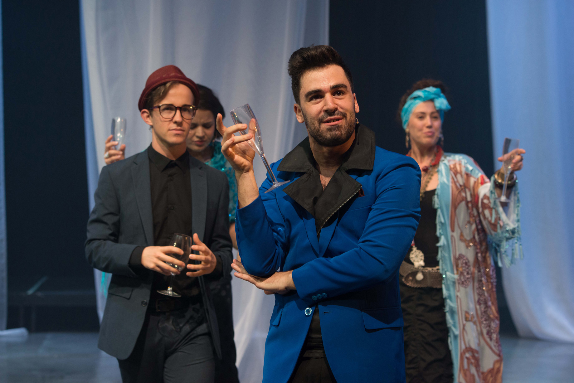 Director Tyran Parke has taken a relatively simple story and created a living piece of theatre. The original work features the everyday characters of a romantic comedy. It is a little hard to care for the characters at first, as the set of graduating university students rushing off to travel the world seem to breathe fairly rarefied and privileged air, yet Parke wins us over with the intensity of the central romance as well as the amusing exploits of the comical second lead couple. Each of the eight highly talented cast members devotes their full energy and commitment to giving their very best performance.