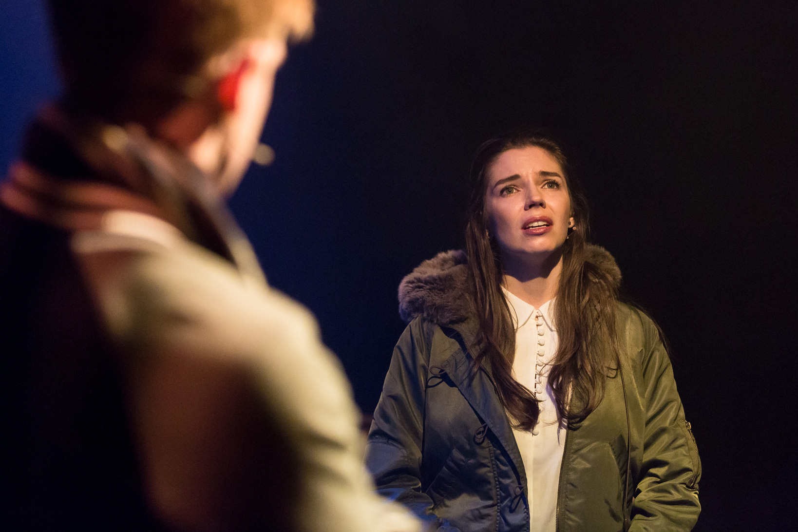 Peter Amesbury draws the eye gently to each singer with his subtle, atmospheric lighting design. The use of shading throughout allows for a strong impact when the stage is fully lit for all four singers in climactic moments. Amesbury highlights the character names, which are written on the set, with pinpoint accuracy.