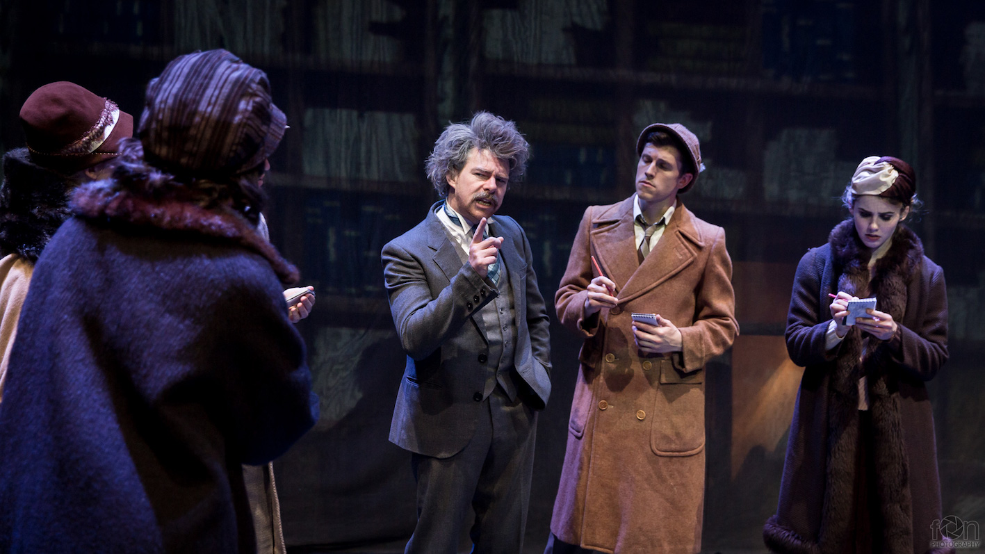 Stepping forward from the ensemble in act two, talented young character actor Jordon Mahar is in excellent voice as rival scientist Niels Bohr. Mahar’s work is somewhat hindered in that the late-arriving role is far less defined than Lenard and Lorentz; he is also not given a costume or look that brings any sort of distinction.
