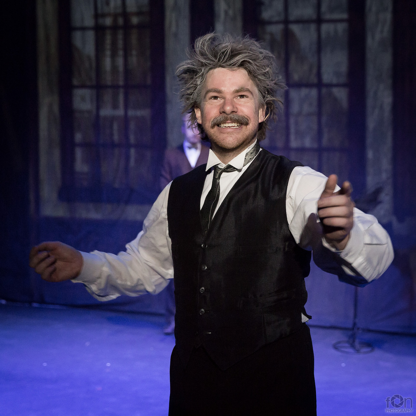 In convincing aged make-up, Lachlan Hewson and Josiah Lulham are a lively, entertaining pair as Einstein’s colleagues/advisors/confidantes/rivals Lenard and Lorentz.