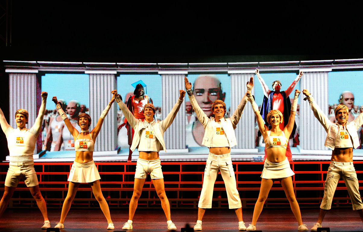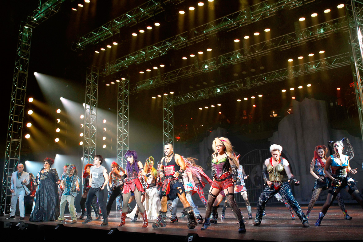 Set in a dystopian future where rock music has been banned, a group of underground rebels seeks to return rock music to its full glory. Elton turns music theatre’s boy-meets-girl formula on its head by giving female lead Scaramouche a snarky, decidedly unromantic personality. Male lead Galileo is the dreamy dreamer who channels rock’s past by speaking in a ceaseless stream of audience-familiar song titles. The joke continues with the rebels’ adopted monikers, which include mis-matched, poorly pronounced incarnations of Madonna, Britney Spears et al.