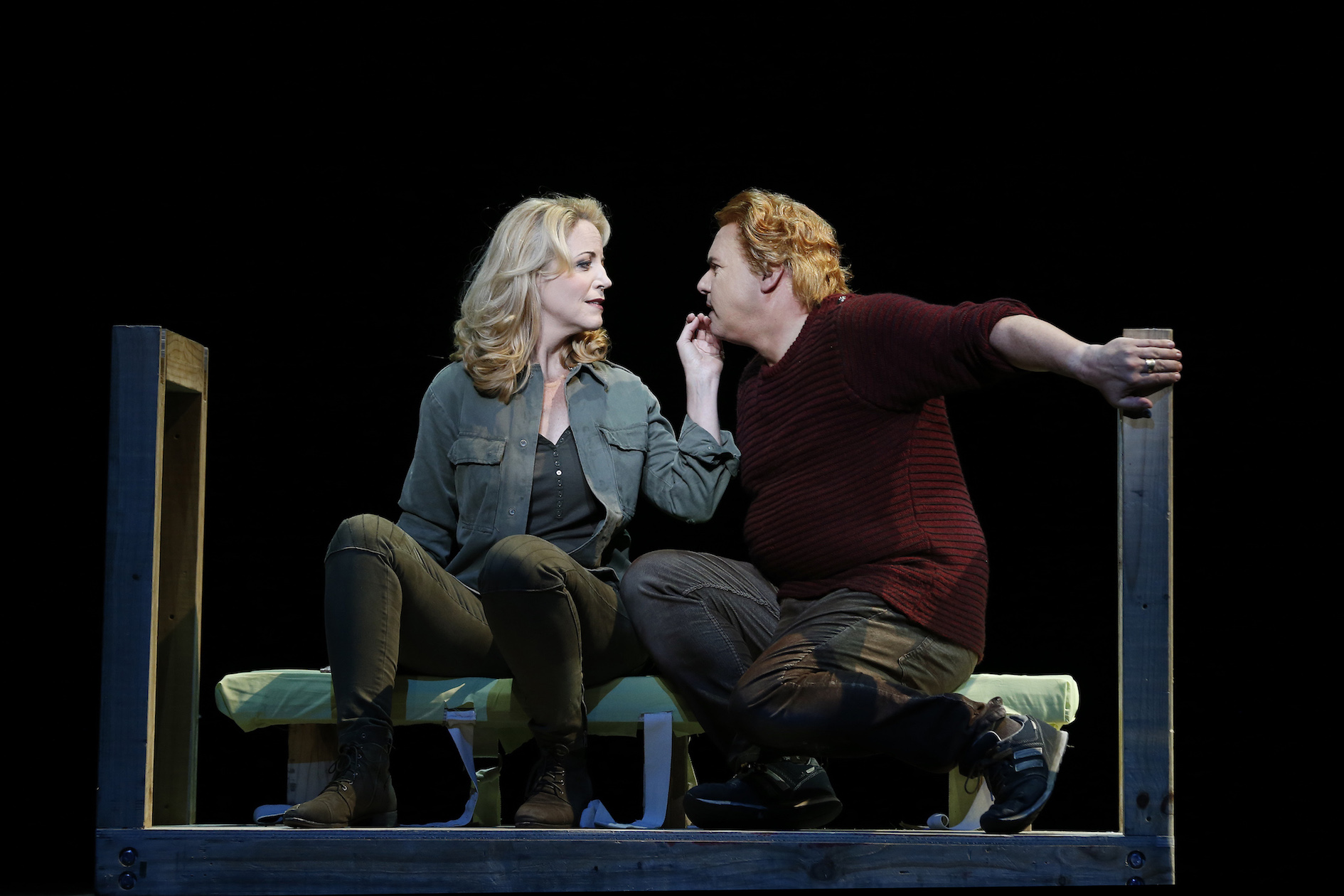 Perfect casting continues Armfield’s vision of these mythical characters in human form. Next to the lofty height of Wotan and Siegfried, “dwarves” Mime and Alberich are seen as small men.