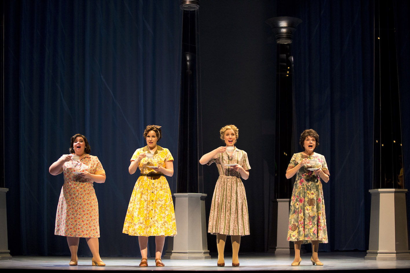 Carolyn Burns has written a zesty adaptation of Madeleine St John’s novel The Women in Black, capturing the pleasures of a bygone era while also deftly underlining the current relevance of the treatment of immigrants. One sequence that remains a missed opportunity is Magda’s description of her New Year’s Eve bash in her sung monologue “The Party.” While this choice means the delivery is in keeping with the same moment in the novel, it robs the audience of the chance to witness key romantic developments, breaking the theatrical rule “show, don’t tell.”