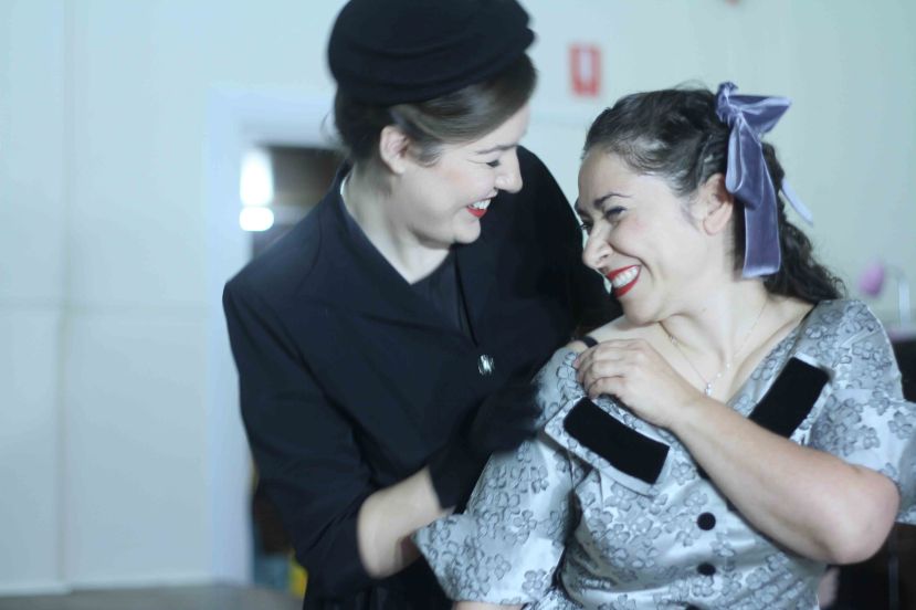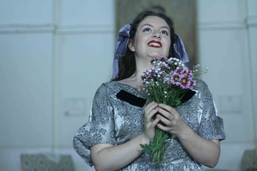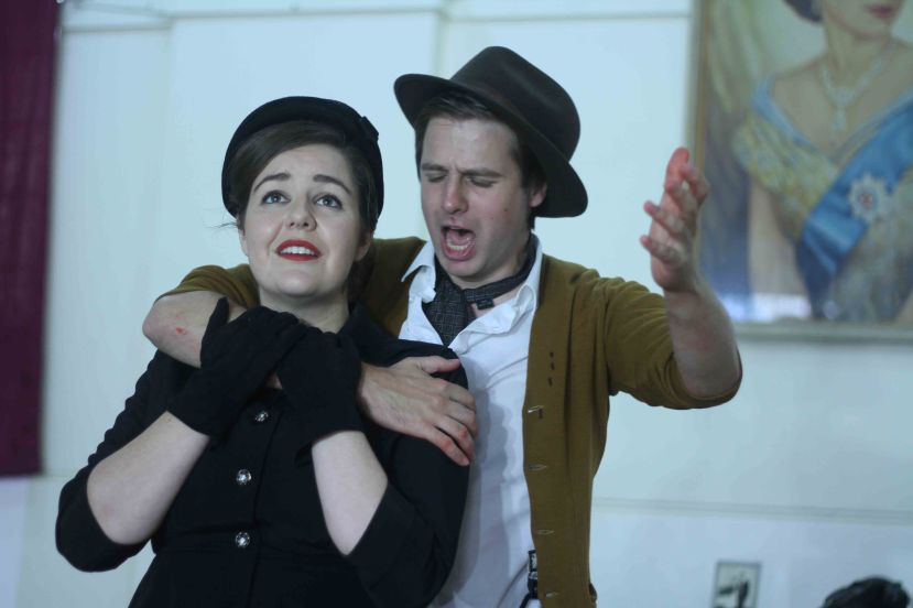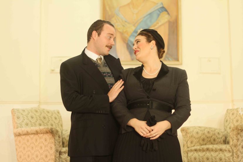 Director Kate Millett presents a unique staging, with cast members staying in the hall even while they are not centre stage. This promotes a strong sense of community and togetherness while watching the opera. Using the Abbottsford Masonic Hall’s elegant portrait of a young Queen Elizabeth II as the central scenic element, Millett has seamlessly updated the action to 1950s Britain. The period costumes bring are well researched and prepared, and add visual interest to the production.