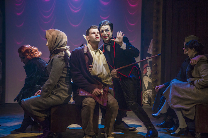 The 1987 Broadway revival version is used in the production, and this is much more closely related to the 1966 original than the more recent Sam Mendes production. Audience members who only know the show through the 1972 movie will miss “Mein Herr” and “Maybe This Time,” but will appreciate the inclusion of a little of “The Money Song” within “Sitting Pretty.” Rarely heard lament “Don’t Go” is sung by Cliff, replacing original number “Why Should I Wake Up?”. The Emcee finishes with searing ballad “I Don’t Care Much,” although the character suffers the indignity of moving a chair off-stage as he sings.