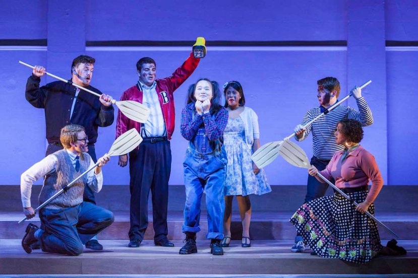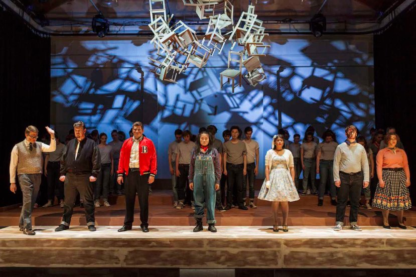 Rather than break the chorus up, Clark has them adopt different body language when playing parents rather than students. The parents are hunched and cross, contrasting with the effusive optimism of the students. Ultimately, this optimism is the message we want, and need, to hear.