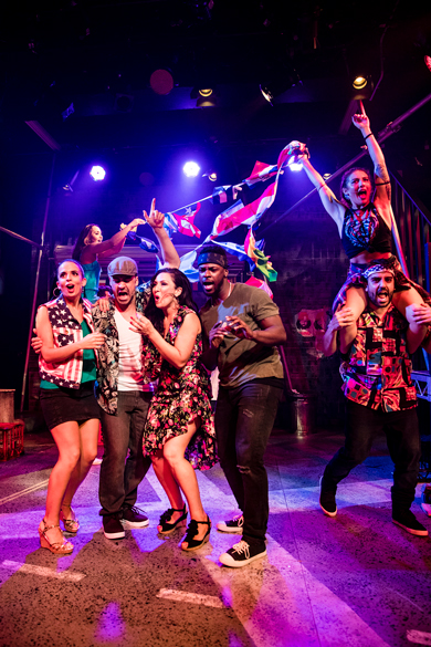 Recent graduate Marty Alix has an elfish sprightliness that makes Usnavi’s young cousin Sonny all the more adorable. Luisa Scrofani has an open frankness that facilitates a strong audience connection to the young woman’s familial, financial and academic struggles. Tim ‘Timomatic’ Omaji brings a thrilling energy to Nina’s suitor, Benny.