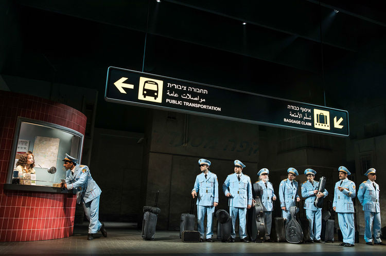 Costume designer Sarah Laux provides crisp powder blue uniforms for the band, and conveys Bet Hatikvah’s casual way of life in the townsfolk’s motley dress. Artful lighting (Tyler Micoleau) suggest hazy warmth and revels in the romantic dusk of evening.