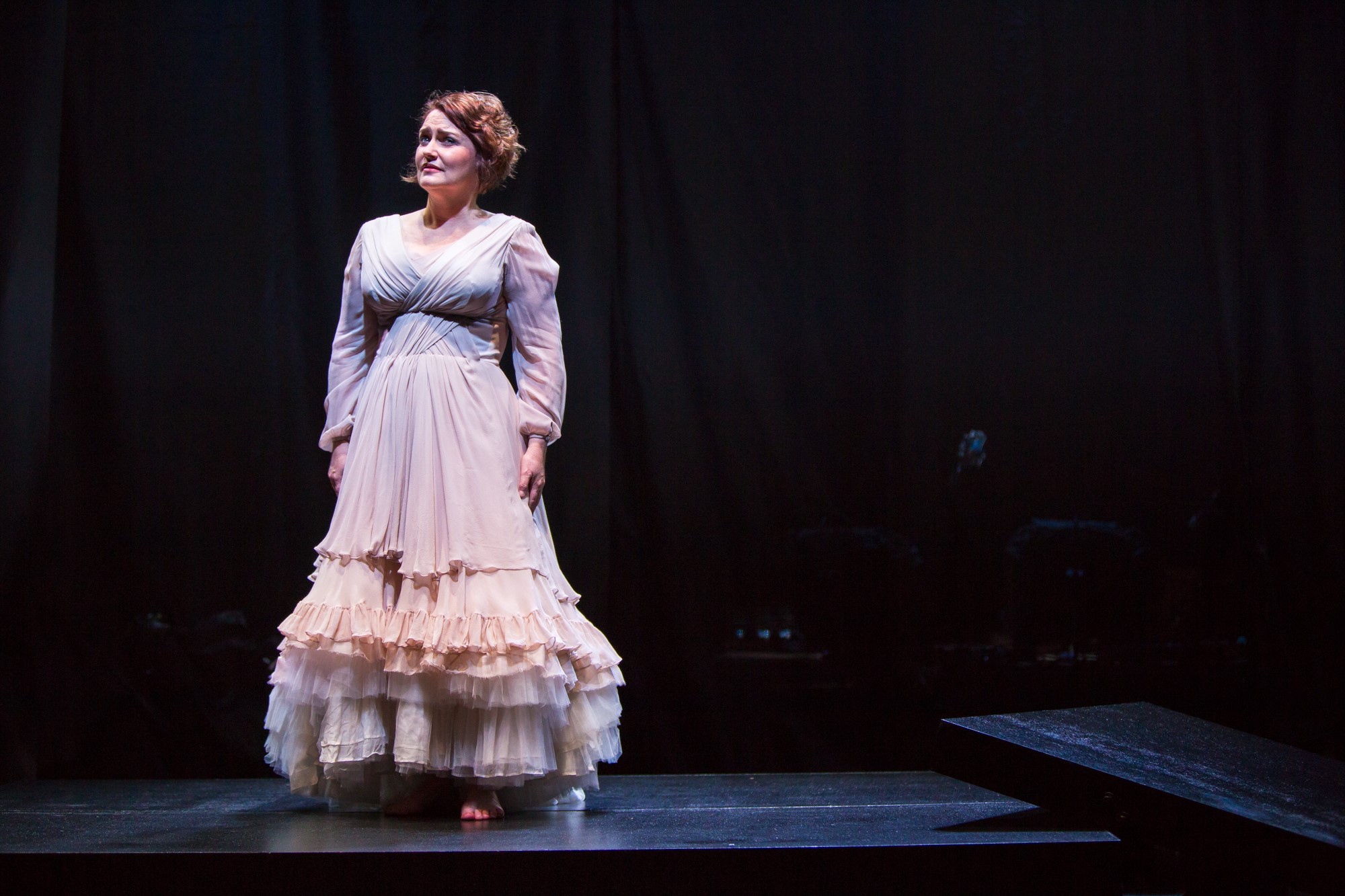 Before the evening diverges into existential territory, Matthews takes to the stage in the manner most familiar to those who have followed her multi-award winning career. Silhouetted centre stage, Matthews sings climactic cadenzas from Lucia di Lammermoor’s famous “Mad Scene,” glass harmonica sound effect and all.