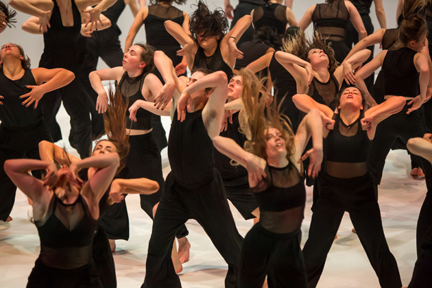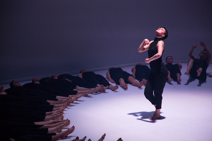 The precision and unity Lake has achieved are evidenced by the fact that the dancers, while lying in the circle, largely cannot see each other so each canon move is passed around by touch and sound. There is a sense of Busby Berkeley style to this opening sequence, and seating is recommended at least four rows back so as to appreciate the effect as fully as possible.