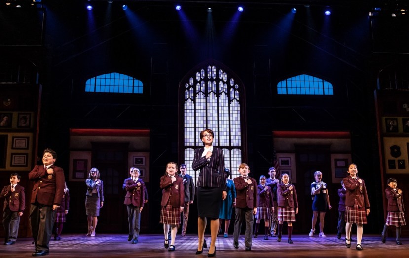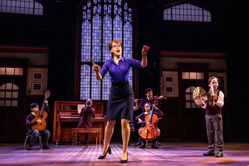 In a brilliant piece of casting, Amy Lehpamer plays somewhat against type as prim and proper headmistress Rosalie Mullins. Not possessing the ultra high notes of the role’s original portrayer, Lehpamer amusingly riffs on transposed variations of “Queen of the Night” when Rosalie gets carried away during music class. Rosalie could be just another stock musical theatre role, but Lehpamer is blessed by Fellowes with a surprising and satisfying character arc. When Rosalie ponders “Where Did the Rock Go?,” Lehpamer really lets fly and the result is electric.