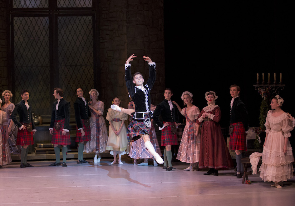 As the unfortunate bridegroom that was to be, Thomas McClintock sports a fresh, innocent countenance, showing James’ harshness toward unwelcome witch Madge to be a momentary fall from grace. McClintock’s terrific solo work is a clear highlight of the ballet. Reaching impressive heights, McClintock moves with athletic grace. He has the confidence to actively engage with the audience in all his dancing, making James all the more likeable.